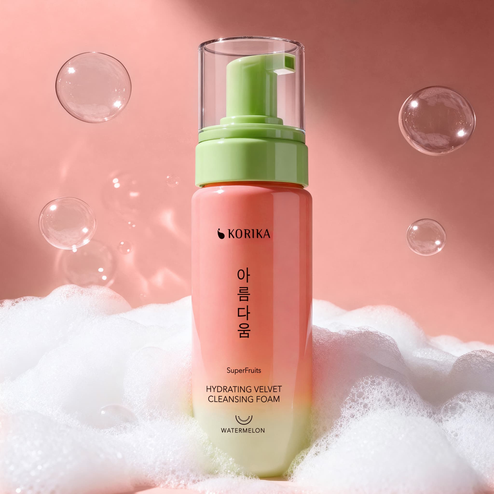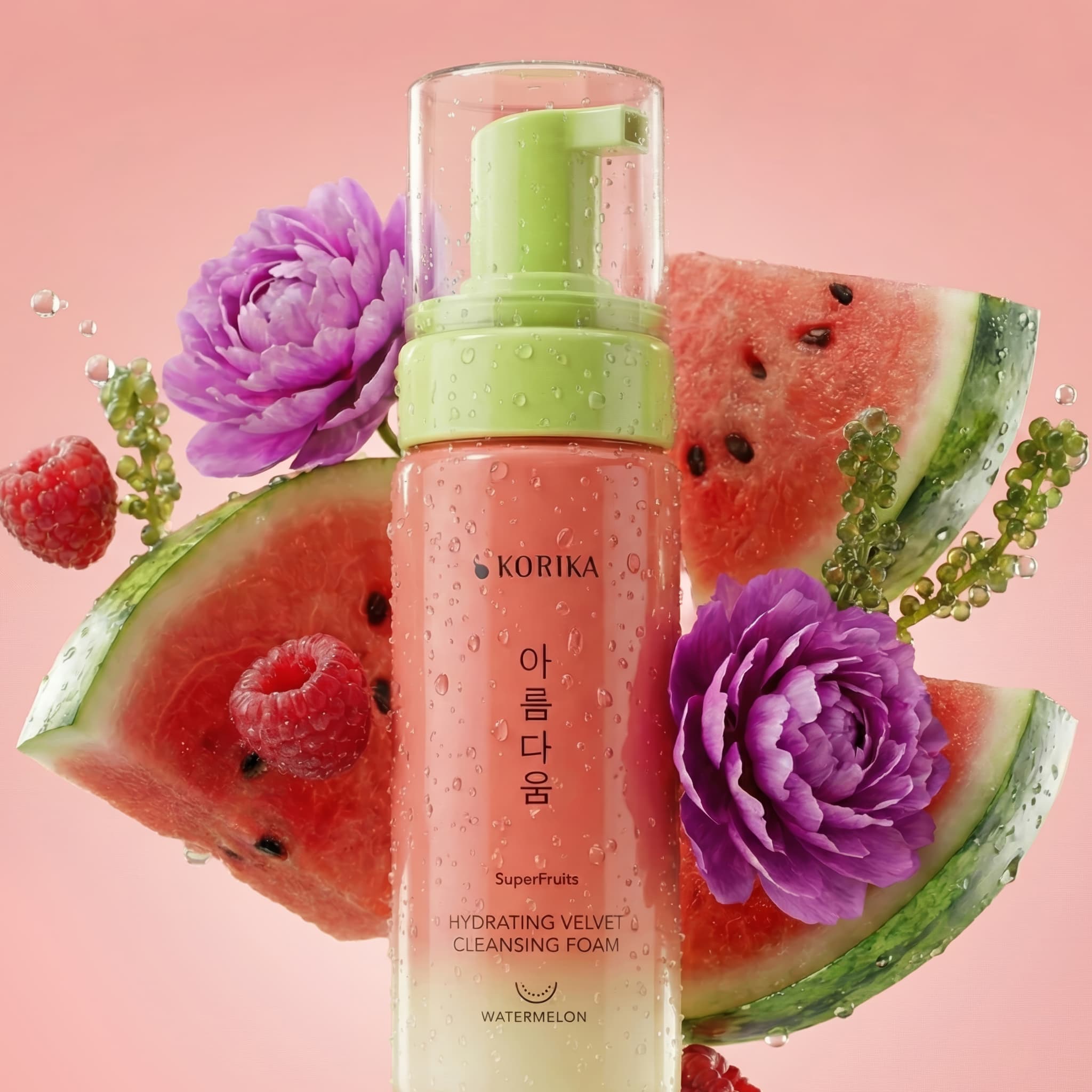 Hydratační čisticí pěna KORIKA SuperFruits Hydrating Velvet Cleansing Foam efektivně odstraňuje nečistoty i make-up. Sametová textura s mořskými hrozny a šetrnými exfoliačními složkami zanechává pleť hladkou, komfortní a svěží. Extrakt z vodního melounu dodává pleti přirozenou hydrataci a antioxidanty, jež ji chrání před vnějšími vlivy. Po každém použití bude vaše pleť dokonale připravena na další kroky péče.